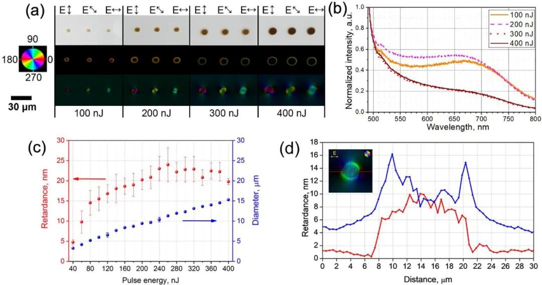 本研究重点分析了激光书写微畴的内部结构,首次揭示了它们的偏振敏感光学特性。