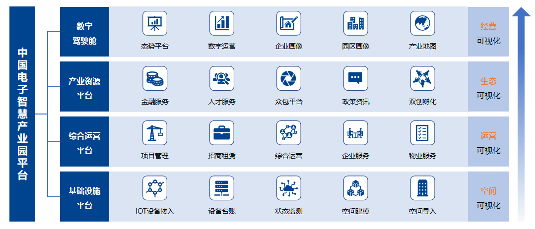 依托一体化平台的构建,集团加强了运营能力的提高和服务效率的提升,并实现了经营成本和管理风险的控制,还将数字化服务融入园区综合运营的全生命周期,以数字化技术赋能企业的经营发展与组织变革,构建产业资源共享生态体系。