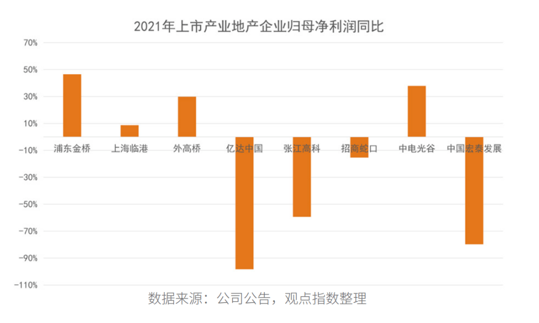 在观点指数重点监测的产业运营企业中,上市企业 16 家,其中 8 家企业公布了 2021 年的年度业绩。数据显示,只有 3 家企业实现了营收和归母净利润的双增长,中电光谷是其中之一。