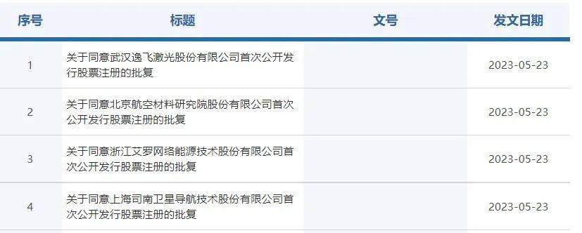 5月23日,证监会发布关于同意联盟单位武汉逸飞激光股份有限公司(逸飞激光)、北京航空材料研究院股份有限公司(航材股份)、浙江艾罗网络能源技术股份有限公司(艾罗能源)、上海司南卫星导航技术股份有限公司(司南导航)首次公开发行股票注册的批复。证监会同意上述公司科创板上市的注册申请。