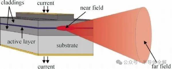 下图为边发射型半导体激光器的结构示意图。EEL的光学腔是以两个端面作为反射镜,光学腔平行于半导体芯片表面,在半导体芯片的边缘发射激光,可以实现高功率、高速率和低噪声的激光输出。但是EEL 输出的激光光束一般有着不对称的光束横截面和较大的角发散,与光纤或其他光学元件的耦合效率低。