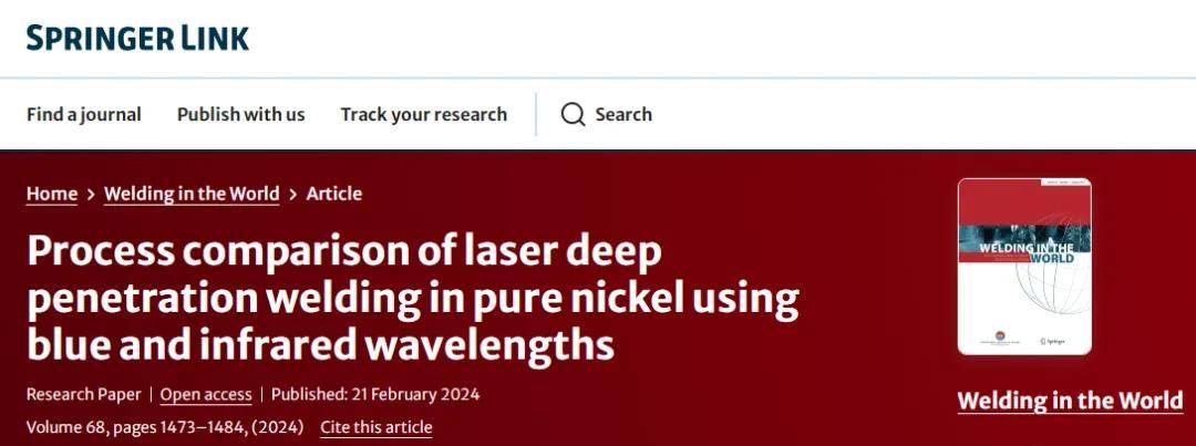 据悉,德国BIAS-Bremer Institut für angewandte Strahltechnik GmbH的科研人员报道了使用蓝光和红外光线波长对纯镍进行激光深熔焊接的工艺比较研究。相关研究以“Process comparison of laser deep penetration welding in pure nickel using blue and infrared wavelengths”为题发表在《Welding in the World》上。