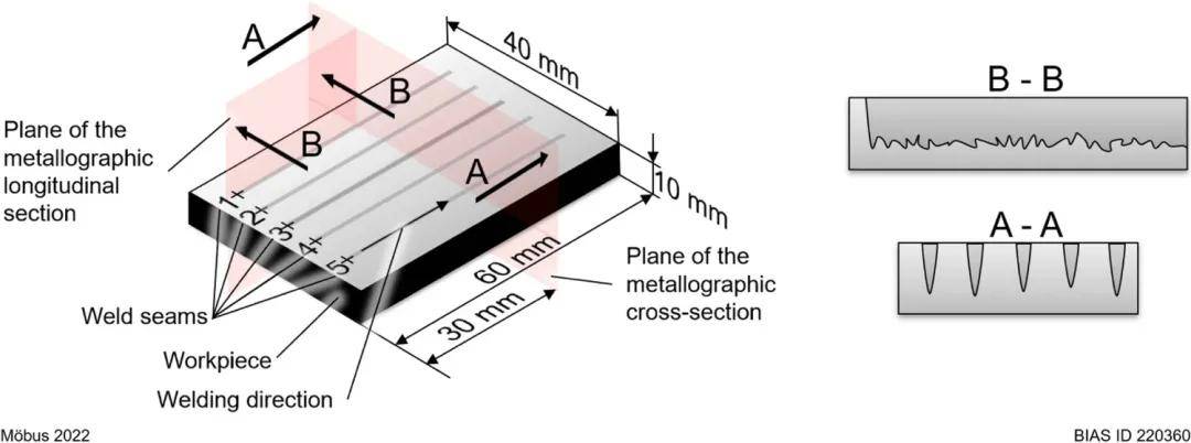 本研究使用波长为1030nm的红外激光光束源和波长为445 nm的蓝色激光光束源对2.4068 纯镍进行了激光束深熔焊接试验,这两种激光光束的光束特性相当。在每种情况下,都使用了两种不同的激光功率,与使用各自其他波长焊接的样品相比,焊接深度相同,以研究这样一种假设:激光波长的改变会改变锁孔内部的局部能量分布以及锁孔动态,包括锁孔开口的波动、飞溅的形成、声发射以及由此产生的孔隙率。通过金相分析和多传感器设置(包括飞溅跟踪、锁孔面积跟踪和机载声发射测量)对实验进行了监测和比较,结果证实了这一假设。