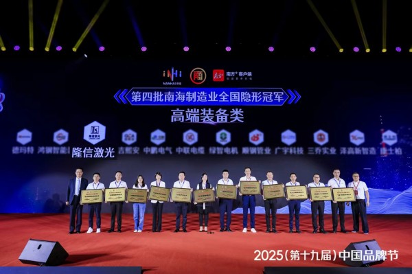 在当晚品牌节特设“2025中国制造业隐形冠军(南海)榜单”颁发环节,隆信激光三维激光切管机以超高市场占有率,实力斩获南海制造业全国“隐形冠军”。