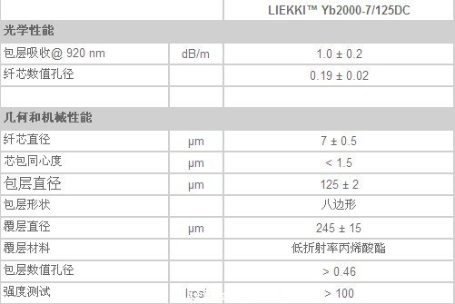 LIEKKI™ Yb2000-7/125光纤目前只提供双包层(Yb2000-7/125DC)。