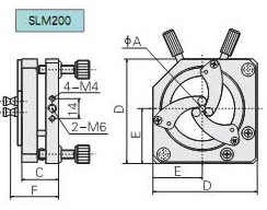 产品类型:SLM200系列可调同轴透镜座 主要特征: ●三点夹持同时连续开启,弹簧自动复位; ●更换不同直径透镜,透镜中心不变 ●M6×0.25细牙螺纹调整两维倾斜。 技术指标: 型号 ΦA(夹持直径) C D E F 倾斜调整范围 自重(kg) MIN. MAX. SLM201 5 50 26 74 39 34 ±5° 0.25 SLM202 5 76 31 104 53 36 ±5° 0.3