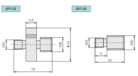 产品类型:SPF105、SPF106型转接头 SPF105用于将M6的螺孔转换为M4的螺栓。大手轮方便使用 SPF106用于将M6的螺孔转换为M4的螺栓
