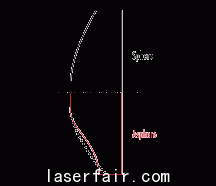 图 1,非球面透镜和球面透镜的表面轮廓比对