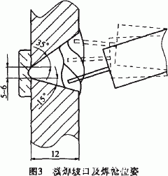 b. 横焊。坡口选用不对称"v"型坡口,具体坡口形式及尺寸如图3 所示。焊前需处理坡口表面。
