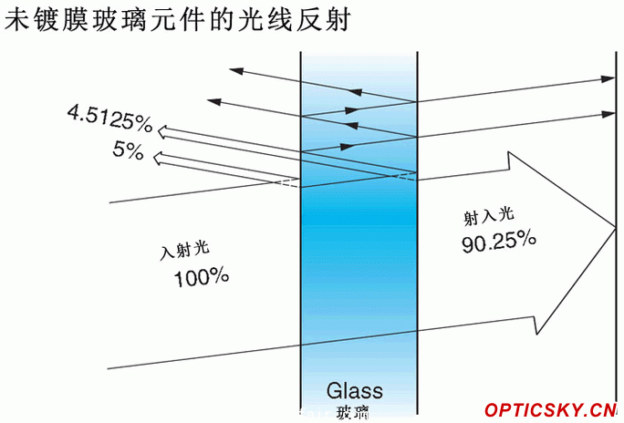 未镀膜光学元件的光线反射