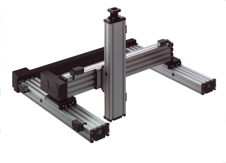 Y轴选用ELZ40和ELR40定位单元,由于结构要求,两个定位单元上下并排放置。ELZ40为主驱动结构,ELR40位辅助结构。两根定位系统由一台400W伺服电机驱动,出于驱动扭矩及惯量的匹配,需要配一台行星减速机。