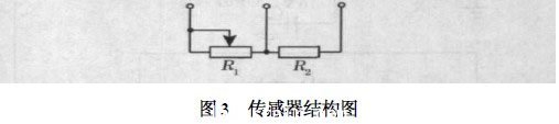 图3 中, R1 、R2为敏感电阻,其基准电阻值为40 Ω ,在其没有受压时,2 个电阻的阻值都不会发生变化,但是当受到外界作用的压力时, R1的电阻值会随着受到压力的不同而发生变化阻值保持不变,这样R1和R2上的压降不同,通过2 次测量分别得到R1 、R2上的压降, 再通过程序计算出它们的比值,就可以反映压力的变化。