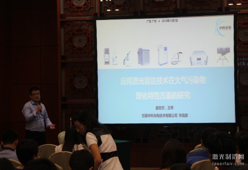 在“大气环境化学与大气污染控制”专题会场,中科光电工程师向与参人员介绍了公司研发团队利用激光雷达技术在探测大气污染物理化特性方面的研究和应用,大量的应用案例及分析讲解引众多专家学者参与交流讨论。