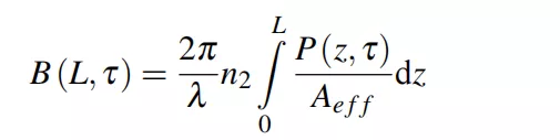 在脉冲光纤激光器中,影响峰值功率最重要的因素是B积分,也就是光纤中的非线性相位偏移量,B积分的定义如下: