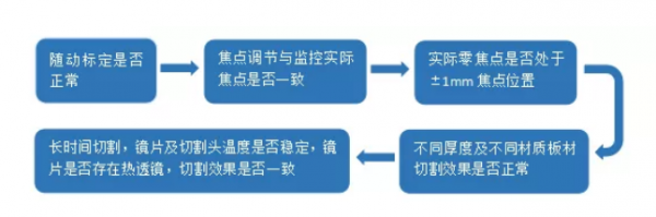 (4)万瓦切割头镜片检查,先用白纸查看万瓦光纤激光器红光是否有黑点,然后低功率出激光,用黑色感光纸查看光斑是否有点,最后取出镜片在显微镜下检查。