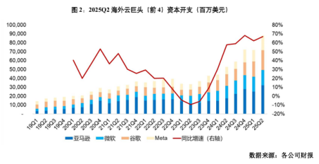 根据 LightCounting 预测,全球以太网光模块市场将在 2024 至 2029 年间保持约 22% 的年复合增长率,预计到 2030 年市场规模将突破 350 亿美元。AI 基础设施建设成为推动增长的关键动力——仅 2025 年第二季度,微软、亚马逊、meta 和谷歌四大云厂商的资本支出同比增长近 70%,显著拉动了 800 G 及更高速率光模块的需求。美国作为全球最大光模块需求市场,占据约六成份额,其 AI 数据中心的持续投资进一步加速了高端光模块的应用扩展。
