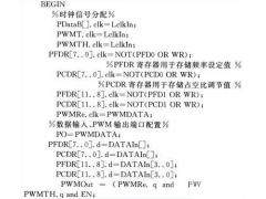 1.2 基于IP核的频率可调PWM电路设计 频率、脉宽可调的PWM发生电路中原形符号如图4所示。其中,EN信号使能该器件;WR写信号与PFD0,PFDl及PCD0,PCDl配合,实现频率及脉宽控制字的写入,控制位...