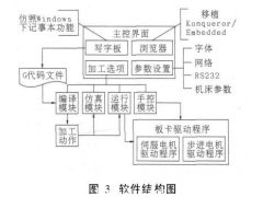 2 系统软件设计 传统数控系统的使用流程是先由用户编辑G代码或其它格式的加工文件,数控系统根据该文件中代码的意义,控制刀具做出相应的动作。所以在软件方面,系统需要提供文本编辑...