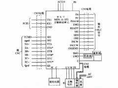 图3为主轴驱动系统的连接电路。MDS-A-SPJA系列主轴驱动器上共有9个强电接线端子和3个信号电缆插座CN1,CN2,CN3。9个强电接线端子分别为:AC 220V三相电源进线R,S,T,交-直-交变频主回路的直流...