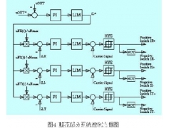 3 整流部分 整流部分系统控制方框图如图4所示。 如图4所示,系统的给定是直流母线电压指令,这个指令与直流母线电压反馈的误差送到电压环的pi调节器。电压环的pi调节与三相输入正弦波的...
