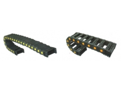 承重型工程塑料拖链系列 TZ35系列 型号 内腔(高X宽) 外腔(高X宽) 弯曲半径(R) 节距 不支撑长度(M) 型式 35.50 35x50 66x91 100.125 65 8 上下盖均可开,滚轮桥式、滚轮全封闭 35.75 35x75 66x116...