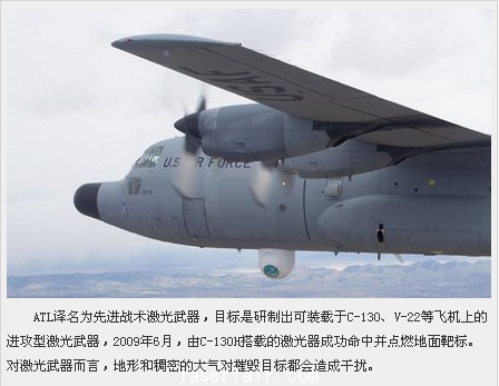 出于弹道导弹防御的需求,美国军方从70年代起就非常注重大功率激光武器的研制。其中进展最大的是ABL项目的氧碘化学激光器(属于气体激光器),该激光器以波音704-400F为载机,输出功率达到兆瓦级,目标是摧毁数百公里外处于助推段的洲际导弹。尽管ABL在2010年进行两次成功的打靶测试,但美国军方认为激光器功率还要提升20-30倍,距离研制目标过远。所以,在军费削减的大形势下,ABL项目下马转为技术储备,项目名称也改为ALTB。