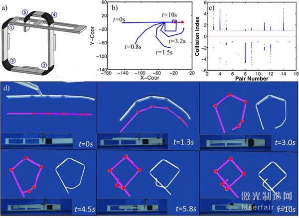 除了这个自组装的盒子之外,研究人员还创建了一个有趣的装置,它一开始是一个扁平的带子,在变形之后一端卷了起来,然后将自己穿入了一个锁孔。据了解,该4D技术可以同时将多达10个不同的材料融入3D结构。研究小组目前正在结合SMP材料进行实验,希望能够制造出类似于软机器人能够在三维空间连续自主移动的4D对象。