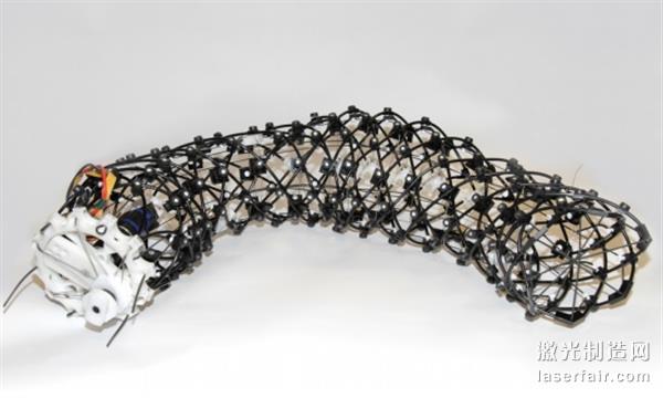 为了能够重建它,科学家们建立了一系列运动学模型和2D模拟方案。“相反,这个原型使用一个处于外部的连续编织的网来使机器人的身体产生波浪式的运动。”他们。最终他们打造出了这个前所未有的蠕虫机器人CMMWorm(兼容模块化网格蠕虫)。它是由一个人工神经元控制器和一系列神经元组组成的模块化蠕虫机器人。几十个3D打印的节点通过尼龙的方式相互连接,致动器也在其中,除此之外科学家们还是有了一些市场上可以买到的现成部件。