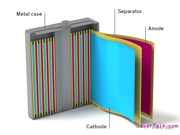 例如锂离子电池,它是由多层非常薄的铜箔和铝箔组成的。为了产生电荷,必须用电解质将箔与箔分开,但是要收集电荷,必须将箔的末端连接在一起。尽管超声波焊接(可以参考本人之前的文章“ Ultrasonic Welding - 超声波金属焊接”)可以焊接这些箔,但是接头的质量较差。相比较而言,蓝光激光可以生成几乎无缺陷的箔焊缝。消费电子类零件面临类似的挑战,它们在相对较薄的铜材料之间实现电气和机械上的可靠连接方面也有很高的需求。在今年技术得到明显突破之前,仅仅是蓝光激光几年前的早期技术, 500瓦的功率,就能够产生这种近乎无缺陷的焊接。