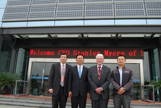 2011 年 10 月 13 日 SEMI 全球总裁兼首席执行官 Stanley Myers 在 SEMI 中国区总裁陆郝安博士陪同下前往常州,对晶体硅太阳能组件制造商天合光能进行参观考察,并与天合光能首席执行官高纪凡先生...